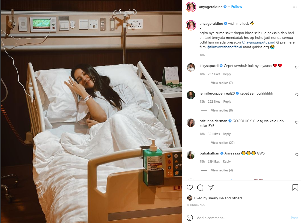 “Ngira nya cuma sakit ringan biasa selalu dipaksain tiap hari eh tapi ternyata mendadak hrs op huhu, ” tulis Anya Geraldine.