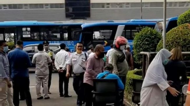 Diketahui satu bus Transjakarta tersebut berhenti karena akan menurunkan dan menaikan penumpang.