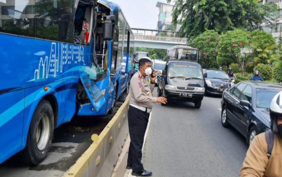 Dua Bus Transjakarta Mengalami Tabrakan Beruntun